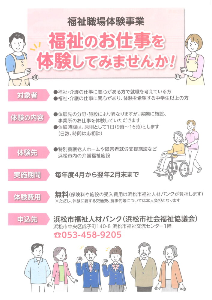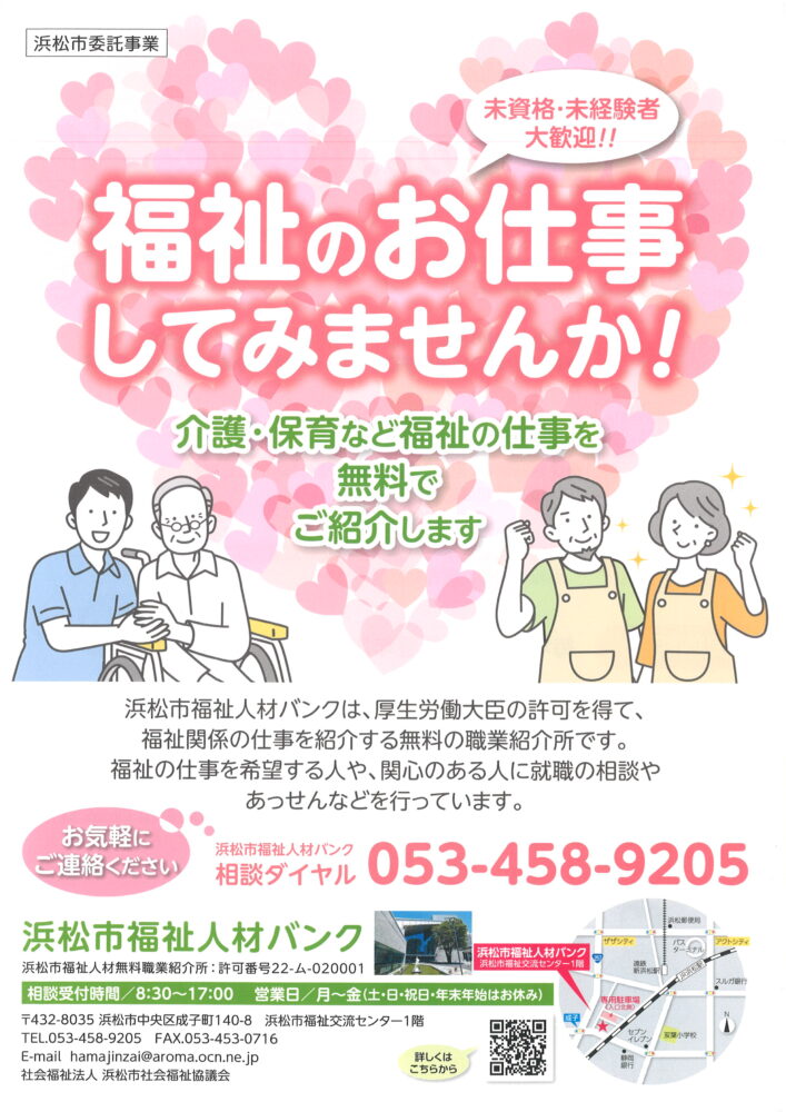 福祉のお仕事してみませんか!浜松市福祉人材バンク