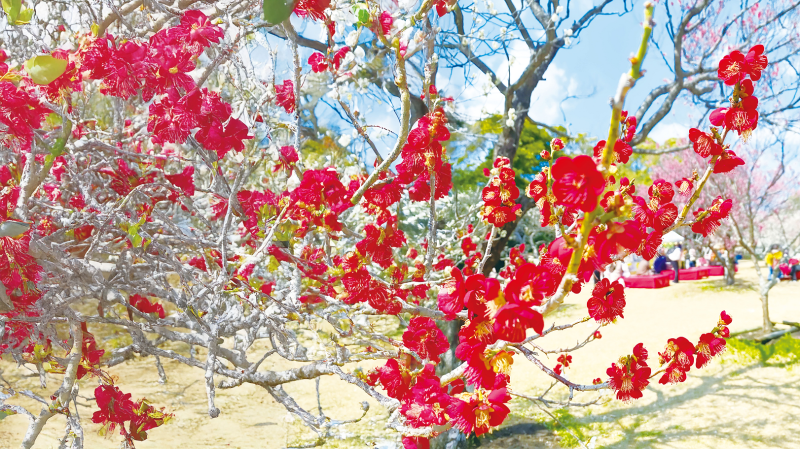 園内では、早咲き・中咲き・遅咲き29種類、約400本の梅が咲き誇り、春の訪れを感じることができます。