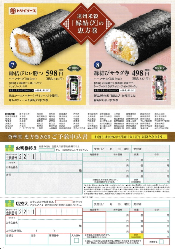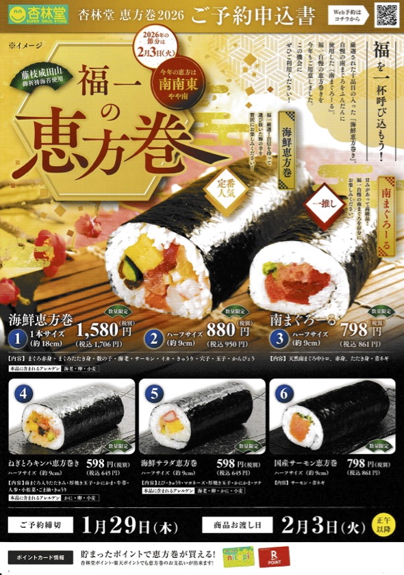 今年の節分は2月3日(火) 杏林堂「福一の恵方巻」ご予約受付中!