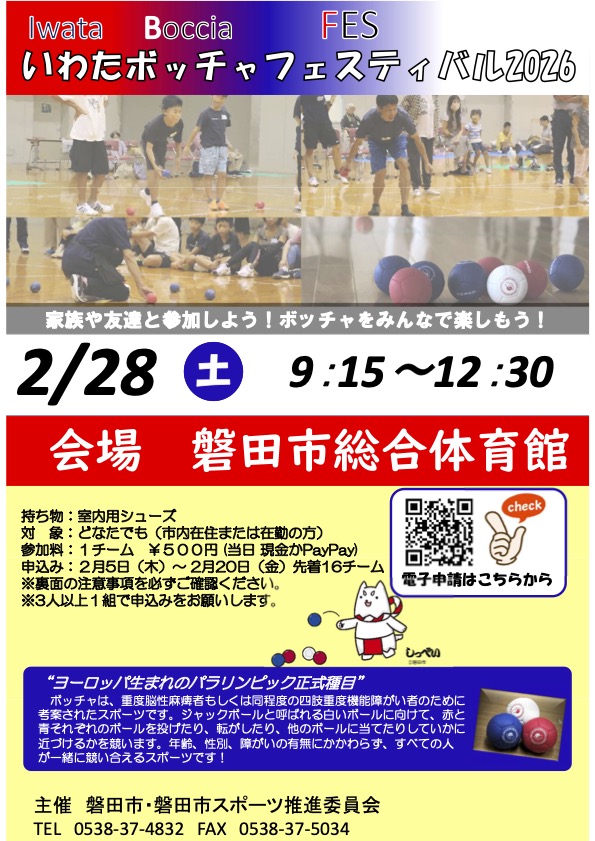 いわたボッチャフェスティバル2026@磐田市総合体育館 2/28(土)