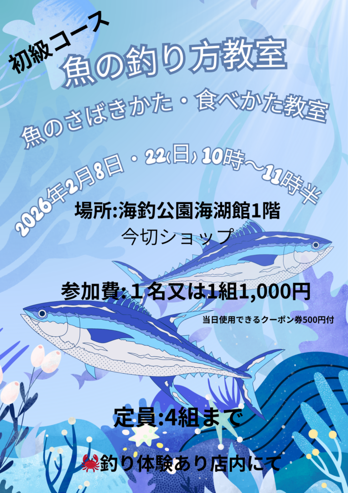 参加者募集!魚の釣り方・さばき方・食べ方教室 @今切ショップ