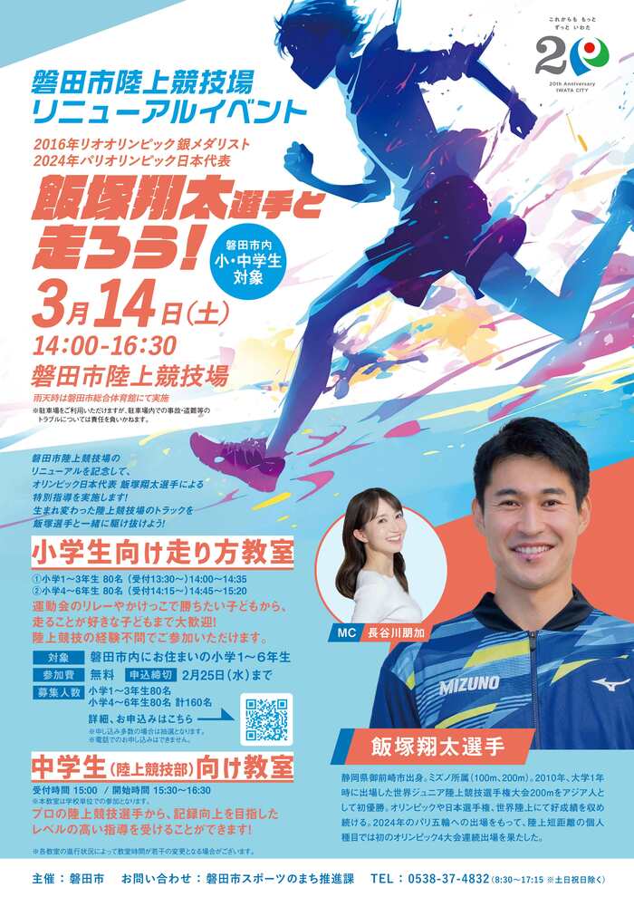 磐田市陸上競技場リニューアルイベント「飯塚翔太選手と走ろう!」3/14(土)