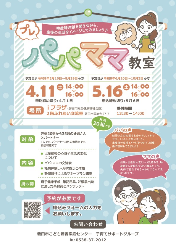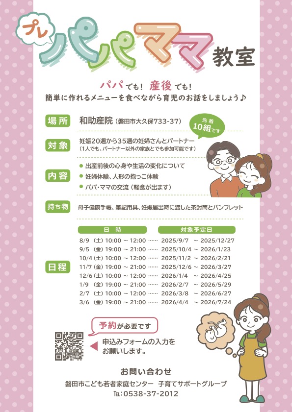 磐田市 プレパパママ教室@和助産院 3/6,4/11,5/16
