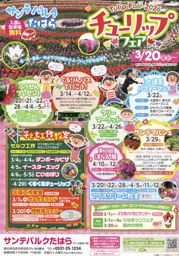 - サンテパルクたはら【チューリップフェア】3/20(金・祝)〜 2026年3月10日