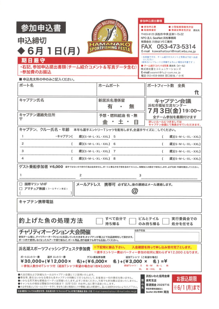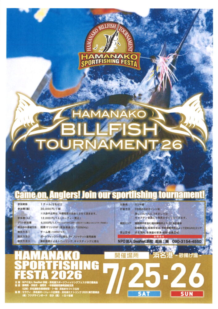 - 浜名湖スポーツフィッシングフェスタ2026 7/25(土)26(日)開催 2026年3月30日