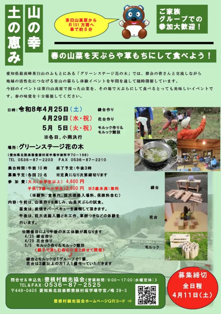 豊根村 春の山菜を天ぷらや草もちにして食べよう!@グリーンステージ花の木