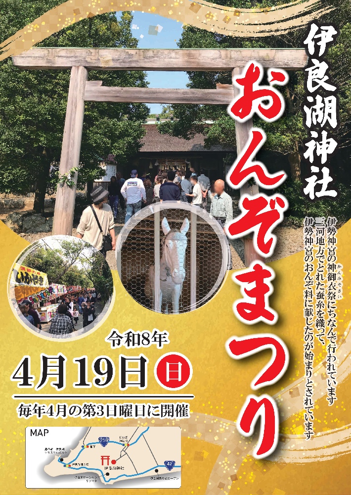 三河地方でとれた蚕糸を織って、伊勢神宮のおんぞ料に献じたのが始まりとされ、毎年4月第3日曜日に開催されています