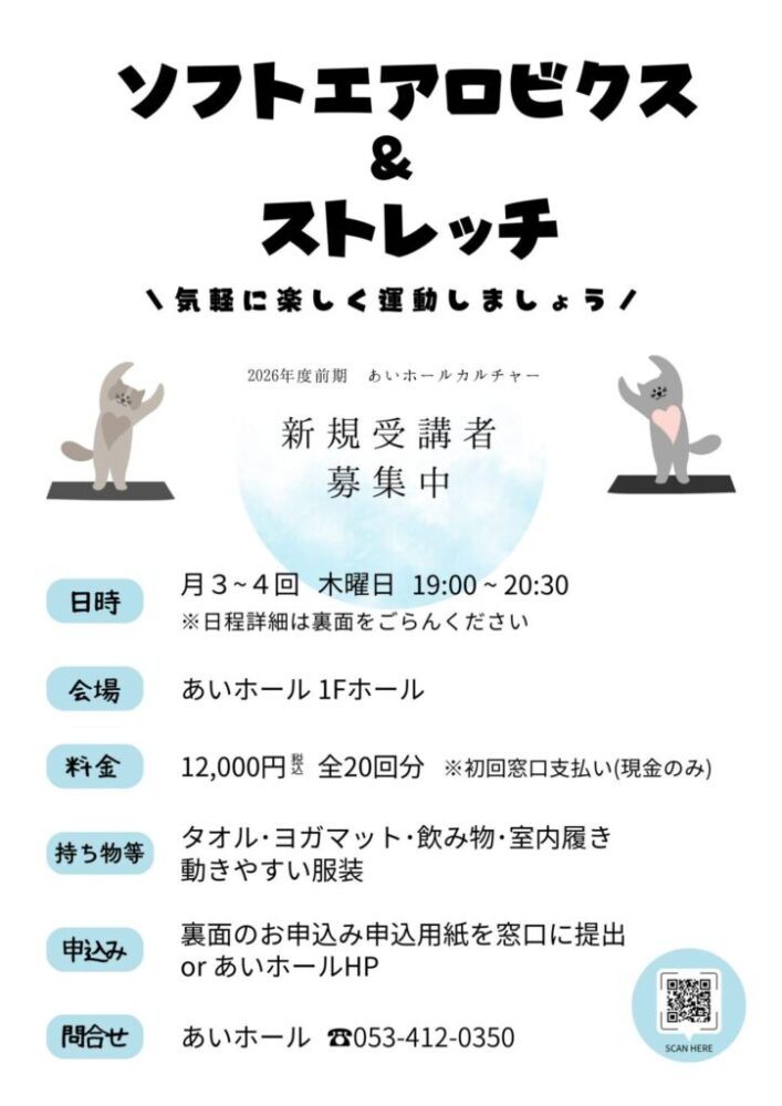 【募集中】2026年度前期 ソフトエアロビクス&ストレッチ(4月~9月)[あいホールカルチャー]
