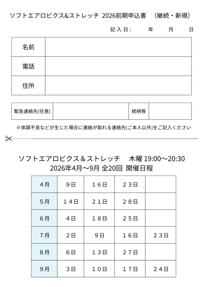 【あいホール】2026年度前期 ソフトエアロビクス&ストレッチ(4月~9月)