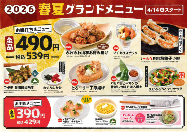 2026414()より、つぼ八では「春夏グランドメニュー」がスタートいたします