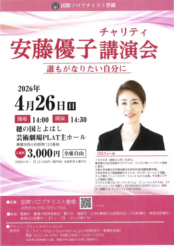 国際ソロプチミスト豊橋  安藤優子 チャリティ講演会